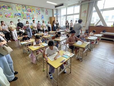 午前中は1・3・5年生、午後は2・4・6年生の授業参観でした。