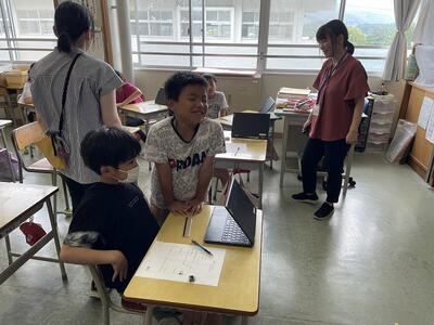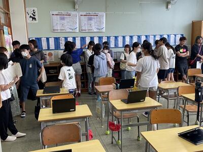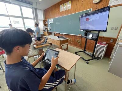 6年生は、「宿題は必要なのか」について、タブレットを使いながら意見交流をしていました。