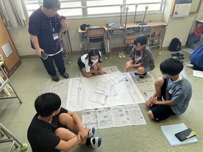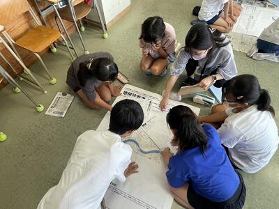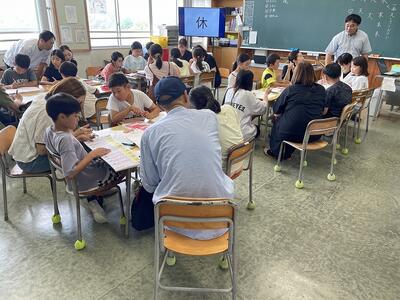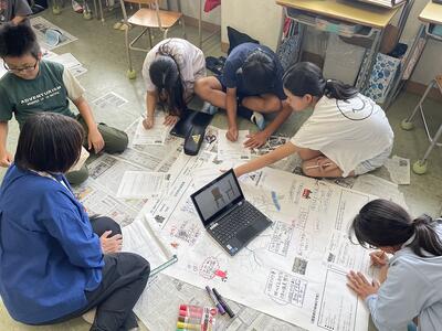 調査の後は、教室に戻って社会福祉協議会の皆さんとともに聞いてきたことをもう一度整理していました。