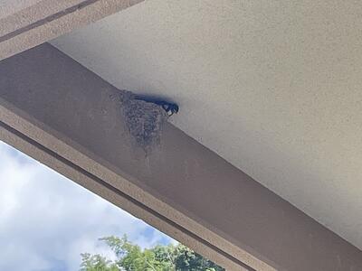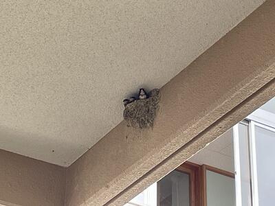 ヘビなどの外敵が来ないよう、慎重に場所を見極めて選んだのは、児童玄関のひさしの部分です。