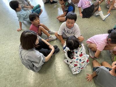 子どもたちからは、100歳体操ってどんなものか質問が出て、実際にDVDを見せてもらいました。