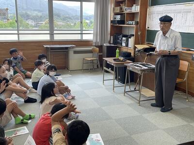 小学2年生のころに終戦を経験したという甲斐誠二様(浦添国民学校学童集団疎開日向交流会事務局長)にお越しいただき、終戦前後の日向市の状況についてお話しいただきました。