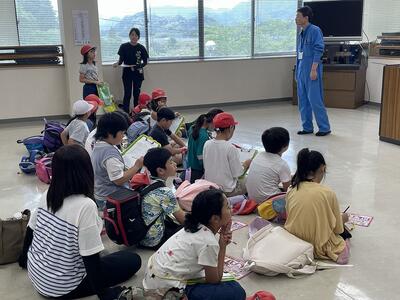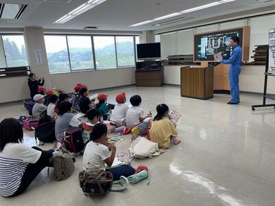 一般廃棄物最終処分場と清掃センターの見学。写真は清掃センターで説明を受けている様子です。