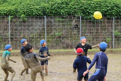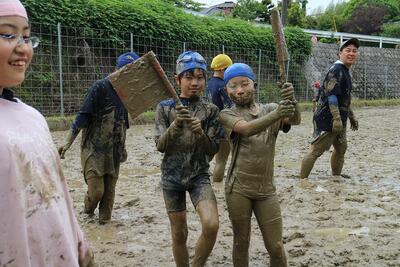 学校の学習田で泥んこ遊び。代掻きの代わりになった!?