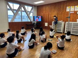 全学年で身長や体重などを測る「身体計測」を実施しました。 身体計測と同時に、養護教諭の先生から「目」の健康についてのお話がありました。