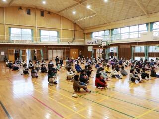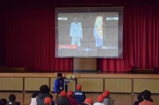 1月11日(火)、5校時に家庭科室から出火との想定で避難訓練を行いました。時折強風が吹き付け寒い中での訓練でしたが、子どもたちは真剣な表情で取り組んでいました。空気が乾燥し、火事のニュースも多いこの時期、まずは火を出さないことが大切であるという話をしました。その後は体育館に移動し、消防署からお借りしたDVDを全員で視聴しました。