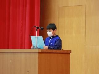 まず5年生の代表児童2名が、「クラスみんなで協力して、6年生に向けてがんばる。」「先生に言われる前に先を読んで行動する。」等の3学期の抱負を発表しました。次に、校長が、3学期はまとめの時期なので、今の学年で学んだことが身に付いているか復習をしっかりやること、1月5日から19日まで、日向市は命の大切さを考える週間となっており、言葉遣いについてよく考えることを話しました。(始業式の様子は、1月7日付の宮崎日日新聞の記事にも取り上げられました。)