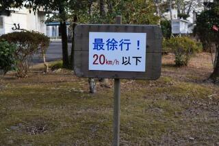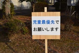 職員や業者、給食車、保護者の皆さんが車で通ることも多く、ほとんどの方が安全に気を付けてゆっくりと通ってくださいますが、中にはあまりスピードを落とさない方もいらっしゃいます。校内は特に、児童最優先でゆっくりと通っていただきたいと思い、看板を設置した次第です。時速20㎞以下での走行をお願いします。