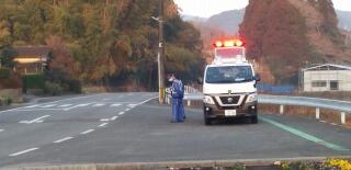 今月から、日向警察署の交通課のおまわりさんが、ときどき児童の登校時刻に合わせて学校下の横断歩道に来てくださっています。この道路はスピードを出して通る車が多く、危ないなと思っていましたのでとても助かっています。