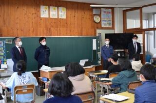 1月10日(火)、5校時に火災を想定した避難訓練を行いました。理科室から出火したという想定で、火元を避けるように、火元から遠ざかるように、「お・か・し・も」のきまりを守って避難することができました。その後の講評で、校長が、家庭で火事が起きた場合はすぐに大声で人に知らせること、すぐに避難し命を守ること、まずは火事を起こさないように気を付けること等の話をしました。