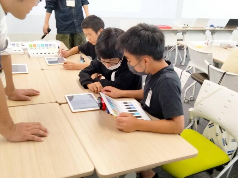 午後は宮崎大学で、タブレット端末をを利用してプログラミングの体験活動を行っています。