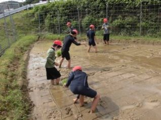 みんな一生懸命田植えをがんばっていました。秋には、おいしいお米が収穫できるように、これからお世話をがんばってくれると思います。