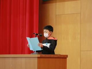 まず5年生の代表児童2名が、「クラスみんなで協力して、6年生に向けてがんばる。」「先生に言われる前に先を読んで行動する。」等の3学期の抱負を発表しました。次に、校長が、3学期はまとめの時期なので、今の学年で学んだことが身に付いているか復習をしっかりやること、1月5日から19日まで、日向市は命の大切さを考える週間となっており、言葉遣いについてよく考えることを話しました。(始業式の様子は、1月7日付の宮崎日日新聞の記事にも取り上げられました。)