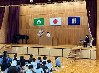 校長先生からは「三力一心」に関連付けた夏休みに頑張ってほしいことや2学期の始業式に笑顔で元気に会えることを願っていることなどの話がありました。