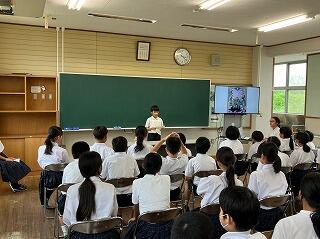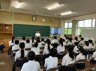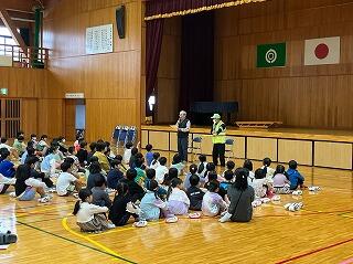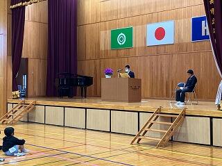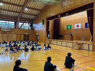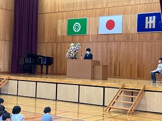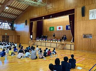 魔法の言葉である「ありがとう」「ごめんなさい」を伝えることで友達を大切にできるということを全校児童生徒に話されていました。