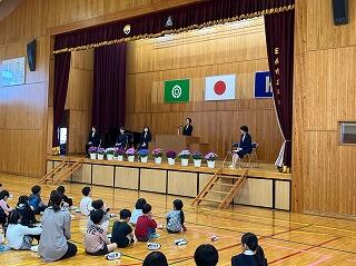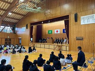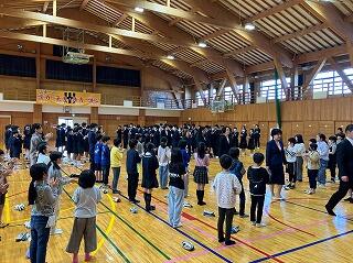 今回の定期異動で平岩小中学校から転出される先生方との離任式を行いました。