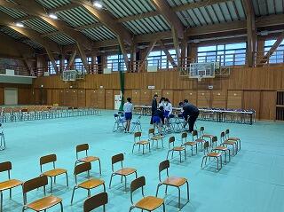 9年生の卒業式、6年生の課程修了式が終わりましたので、2学年分のスペースが詰まり、人数も少なくなっていました。