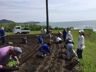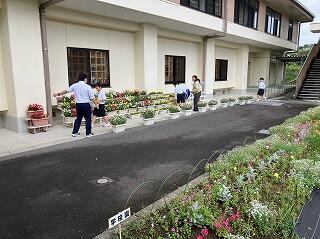 昨年度、地域の方と一緒に植えたネモフィラが満開のよい眺めの中行われました。