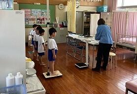 小学校で初めての身体計測では、保健室の先生の話をしっかり聞いて行動しようとしていました。