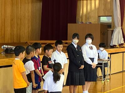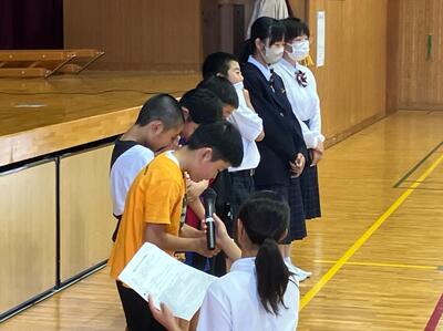 代表児童生徒が1学期の振り返りと2学期にがんばることを発表しました。