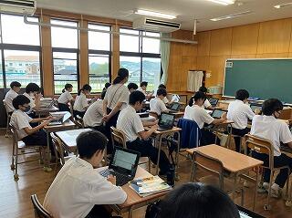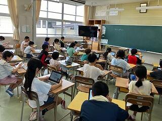 終業式は体育館で行う予定でしたが、熱中症警戒アラートの発令と体育館内の状況等を鑑みて、配信での終業式としました。