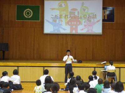 代表児童が1泊2日で学べること、「規律、協同、友愛、奉仕」について話しました。