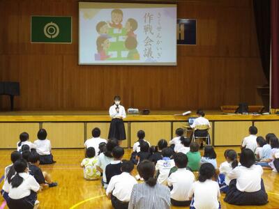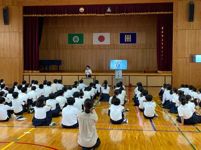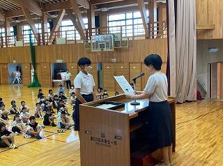 朝の集いでは、それぞれの役割分担を責任をもって行いました。
