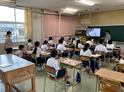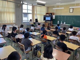各学年で普段の授業と同じように進めたり、外国語活動の中で一緒に楽しんだりと様々でした。