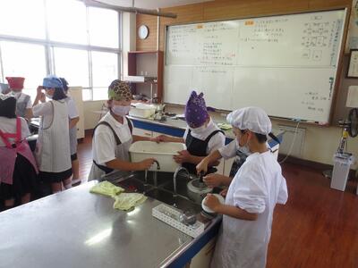 初めての調理実習でしたが、班のみんなと協力して行えました。