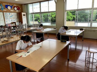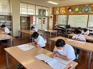 モミラニ小の歓迎式と時を同じくして、9年生は実力テストを実施しました。