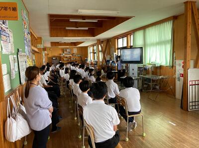 歓迎式の後に1~7年生と授業の中で交流をしました。