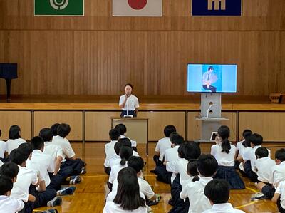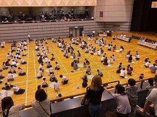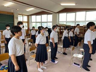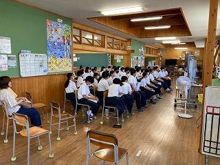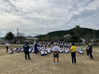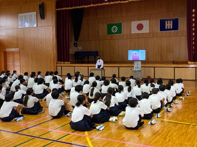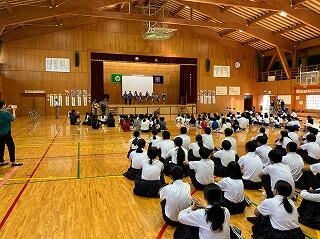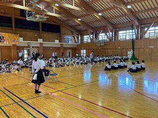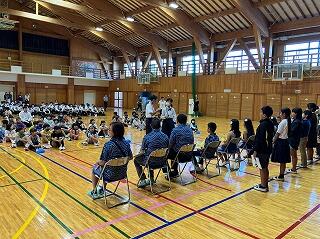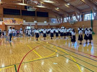 10、11日に行われる日向地区中学校総合体育大会に向けて全校児童生徒で激励しました。