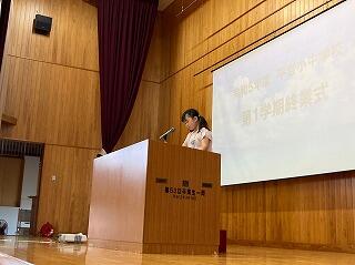 さらに選手代表宣誓を女子ソフトテニス部主将が行いました。