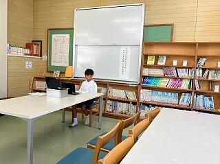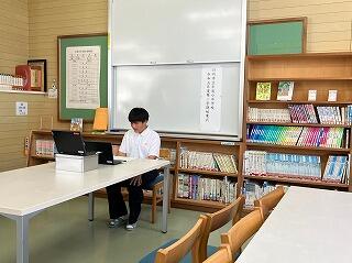 雨の日はどんな風に過ごしているのかと学校の中を歩いていると図書室に人影がありました。