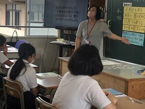 今回は英語科担当の教員とALTの先生と一緒に学習しています。