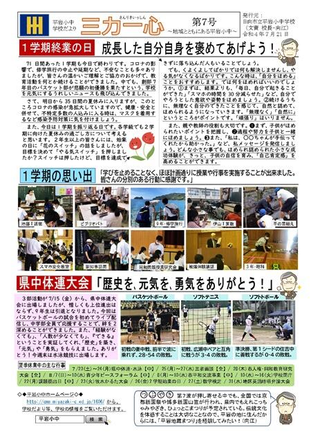 7/21(木)、令和4年度「平岩小中学校だより三力一心№7」を発行しました。