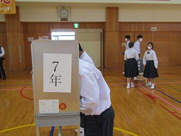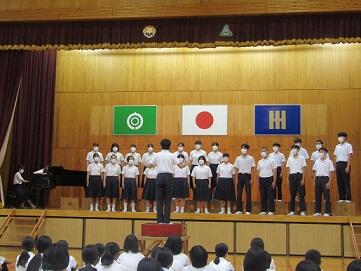 中学部は委員会報告集会を行っていました。