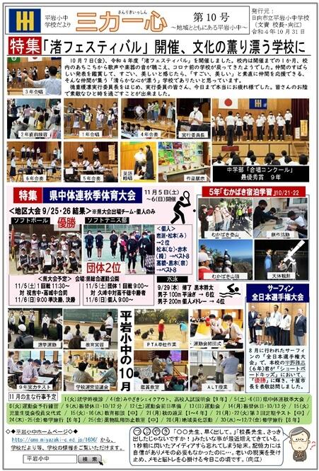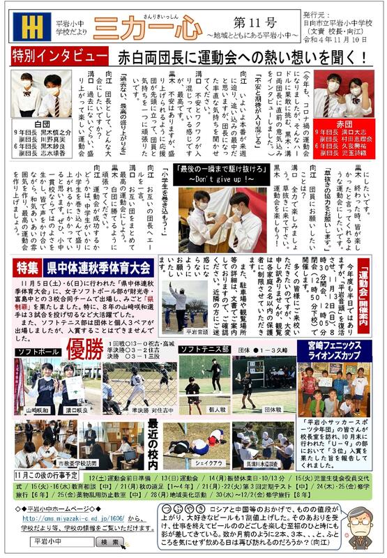さて、本日9/22(木)、令和4年度「平岩小中学校だより三力一心№9」を発行しました。