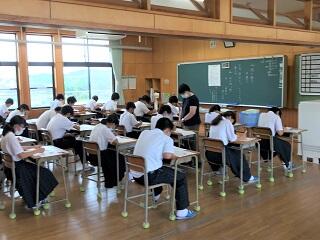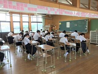 7~9年生は、今日から水曜日までの3日間が第2回定期テストになります。今日が3教科、明日と明後日が各2教科となっています。第1回定期テストの反省を生かして、今回はしっかりと準備をしてテストに臨んでいる人もいるようです。残り2日間、自分の実力を出し切って頑張ってください。