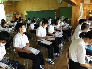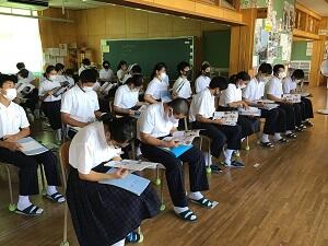 昨日と今日の5・6時間目に高校説明会を実施し、8・9年生が参加しました。私立高校・県立高校併せて10校より講師の先生方をお招きし、それぞれの学校の学科や特色について丁寧に説明していただきました。子どもたちも、熱心にパンフレットに目を通すなど真剣な表情でした。生徒さんは、とても素晴らしい態度でしたと褒めてくださった学校もありました。ぜひ、今後の進路選択・進路決定に役立てて欲しいと思います。