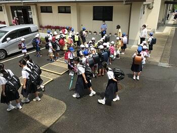 2年生は、昨日の1・2時間目に町探検を行いました。自分たちが住んでいる地域のことを知ろうということで毎年行っています。みんな、交通ルールを守りながら1列に並んで、しっかりと町を探検していました。また、この日は地域ボランティアの甲斐さんと釘宮さんにもお手伝いいただき、一緒に歩いていただきました。いつもありがとうございます。