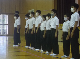 今日の1時間目に、運動会に向けて初めての全体練習が行われ、1~9年生の全校の児童生徒が参加しました。新型コロナウィルス感染防止のため、例年よりも一人一人の間隔を広くとり、マスクを着用しての練習となりました。練習では、開会式の確認やラジオ体操、退場の仕方、各団ごとの応援練習など行いました。みんなで協力して、少しずつ運動会を作り上げていきましょう。