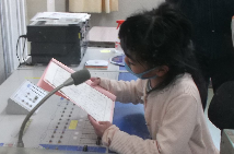 6年生の算数の風景です。担任の先生が授業を進めていますが、もう一人、中学部の数学の先生が授業をサポートしています。今年から小学部のどの学年も週1~2時間、中学部や高学年の先生による授業サポートの時間を設けたことで、学習活動がより充実してきました。