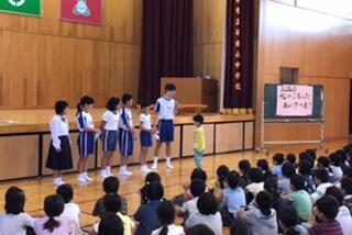 今日の朝の活動で延期になっていた児童生徒集会をしました。