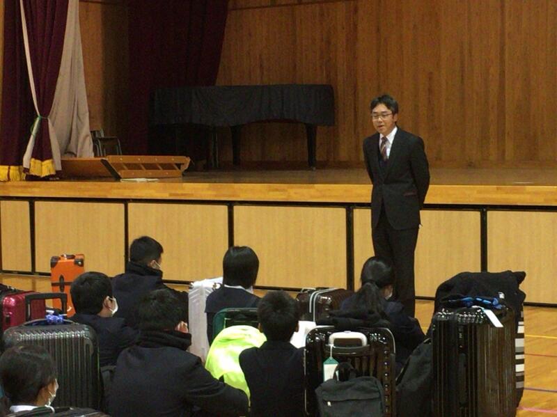 生徒会役員の生徒が安全について全校児童生徒に訴えました。