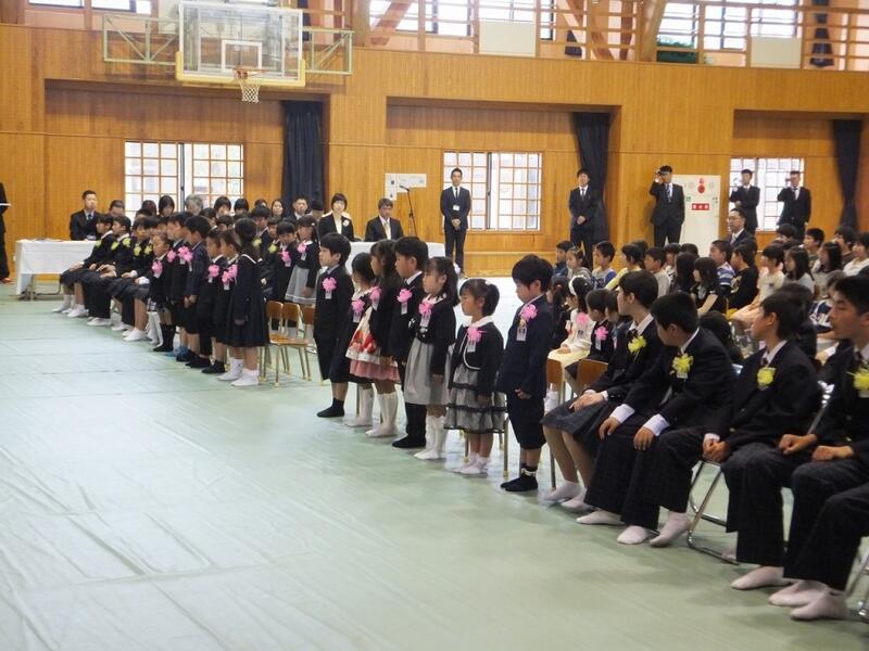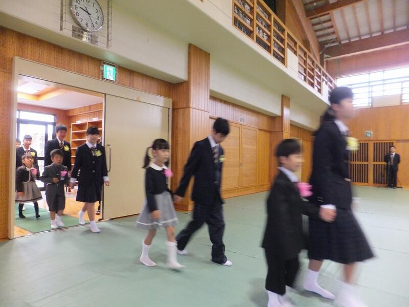 7年生が1年生の手を引いて入場してくる光景はとても微笑ましいです。