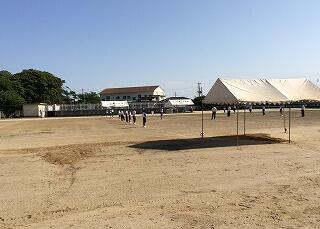 グラウンドコンディションは悪かったのに加えて、昨日予定していた準備もできていなかったのですが、1時間目に中学部の生徒と先生方が準備をして下さいました。