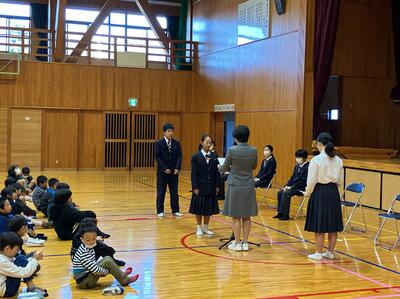 児童生徒のがんばりへの賞賛と3学期以降がんばることについてお話がありました。