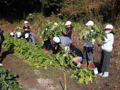 学校の畑で栽培している大根の収穫を3年生が行いました。