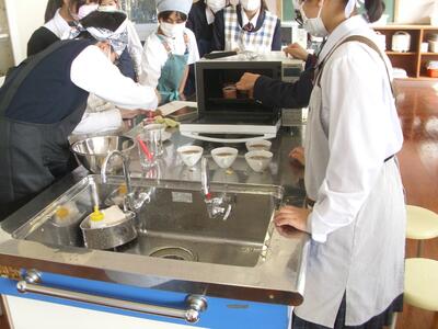 7年生が、家庭科の調理実習で「蒸しパン」と「カップケーキ」を作りました。